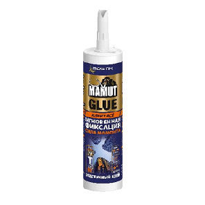 Суперсильный гибридный монтажный клей • Экстремально высокая начальная хватка до 400 кг/м² • Не требует дополнительной фиксации* • Без запаха. Не содержит растворителей • Без усадки и без пузырей. • Высокая устойчивость к УФ-излучению, атмосферным воздействиям и воде • Высокая механическая прочность соединения до 22 тонн/м² • Поглощает механические и акустические вибрации • Отличная адгезия к большинству поверхностей без грунтования • Нейтральная реакция отверждения • Легко шлифуется после полного высыхания. Может быть окрашен • Внутри и снаружи помещения MAMUT GLUE (МАМУТ ГЛЮ) гибридный монтажный клей на основе SMP технологии, с высокой начальной силой фиксации. Отверждается в результате реакции с влагой воздуха. Продукт соответствует классу эмиссии летучих органических соединений (VOC/ЛОС) А+ (очень низкая эмиссия) по французскому стандарту эмиссии опасных компонентов в воздух помещений. MAMUT GLUE специально разработан, как универсальный монтажный клей с экстремально высокой начальной силой фиксации. Применяется для клеевого монтажа различных элементов конструкций и надежного соединения разнообразных строительных материалов, таких как: камень, бетон, зеркала, стекло, гипсокартон, полиуретан, ПВХ, твердые пластики, эмалированные поверхности, керамика, медь, свинец, цинк, олово, алюминий и др. металлы (в том числе сплавы), нержавеющая сталь, дерево и т.д. ТЕХНИЧЕСКИЕ ХАРАКТЕРИСТИКИ: Основа SMP – силан-модифицированный полимер (гибрид) Цвет Белый Плотность 1,57 г/мл Время пленкообразования 10 минут Скорость высыхания ок. 2 - 3 мм/сутки Модуль при 100% растяжении 1,39 Н/мм² Удлинение при разрыве 335 % Прочность на разрыв 2,2 МПа Твердость по Шору, А ок. 55 Температура эксплуатации от - 40 ⁰С до + 90 ⁰С Температура применения от + 5 ⁰С до + 40 ⁰С Расход Упаковка на: - 15 п.м полосы Ø5 мм - 7-8 п.м V-об-ным носиком Картридж 290 мл